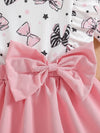 Baby Girl Cute Summer Round Neck Cartoon Bow Pattern Short Sleeved Pleated Fake Two-Piece Set Spliced Dress And Headband